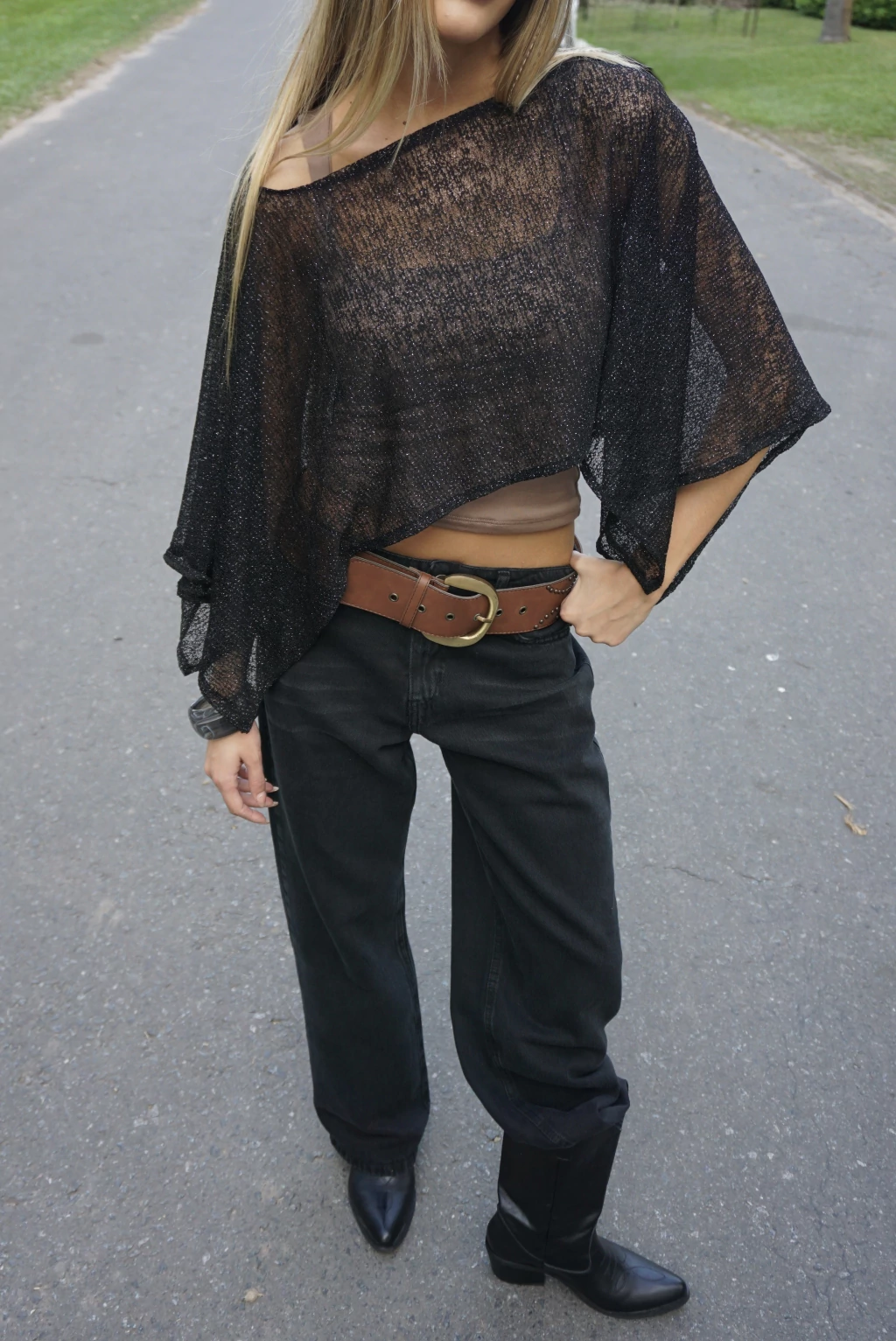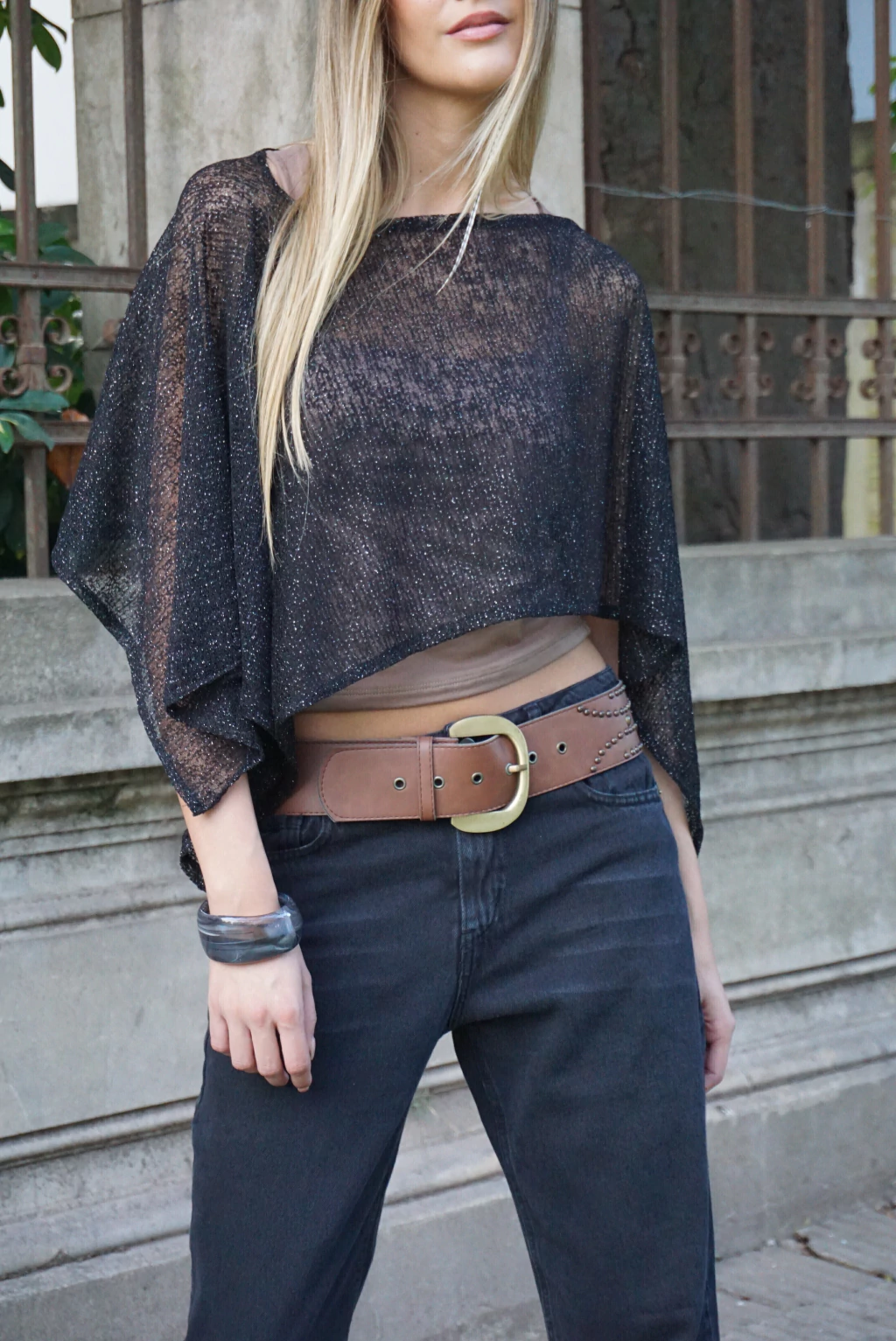 • Poncho de tejido lurex para usar de diferentes maneras, con dobladillo en el ruedo y cuello♥