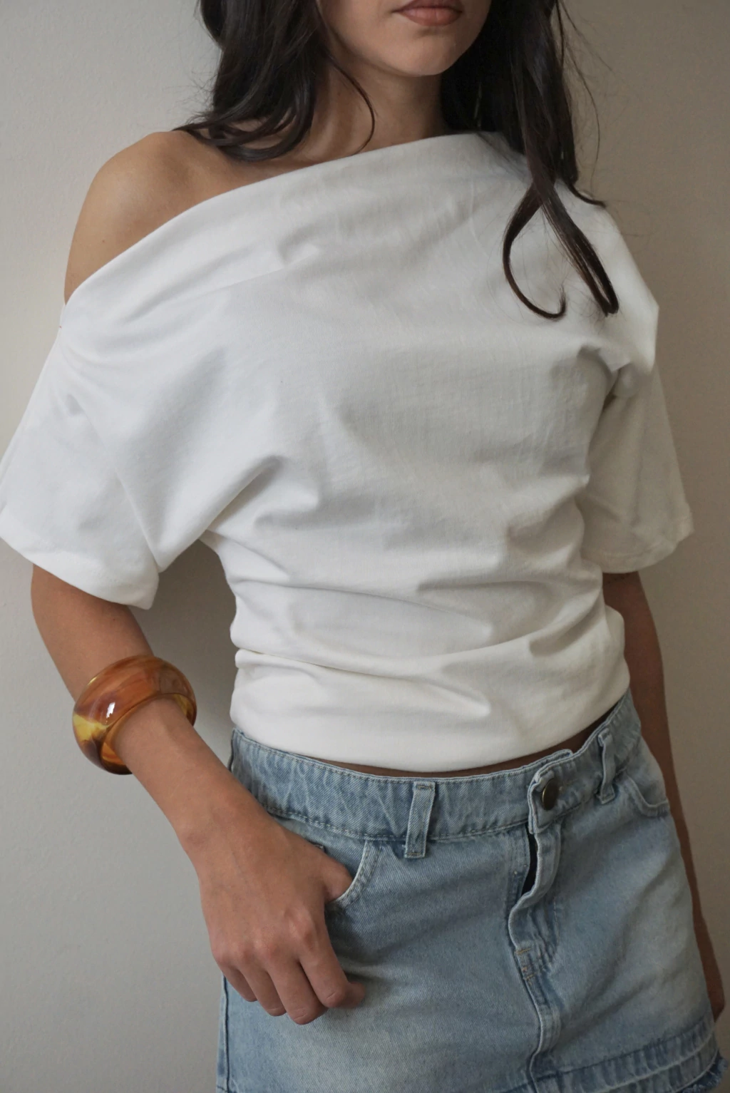 • Corte irregular, ideal para elevar un outfit básico. Disponible en color blanco y negro.