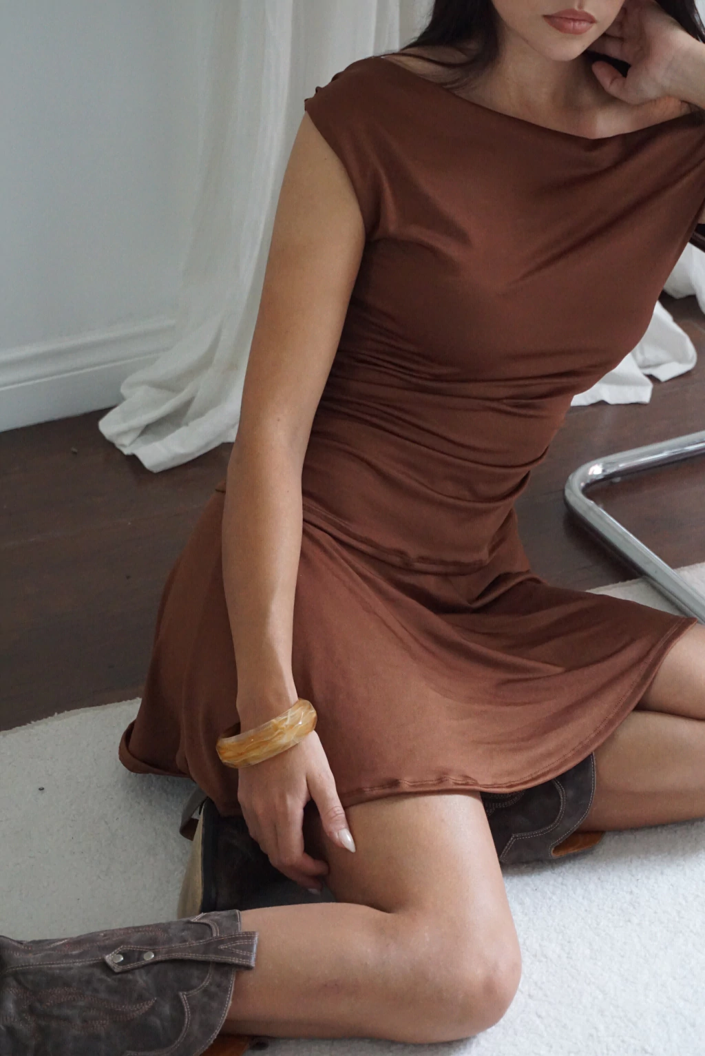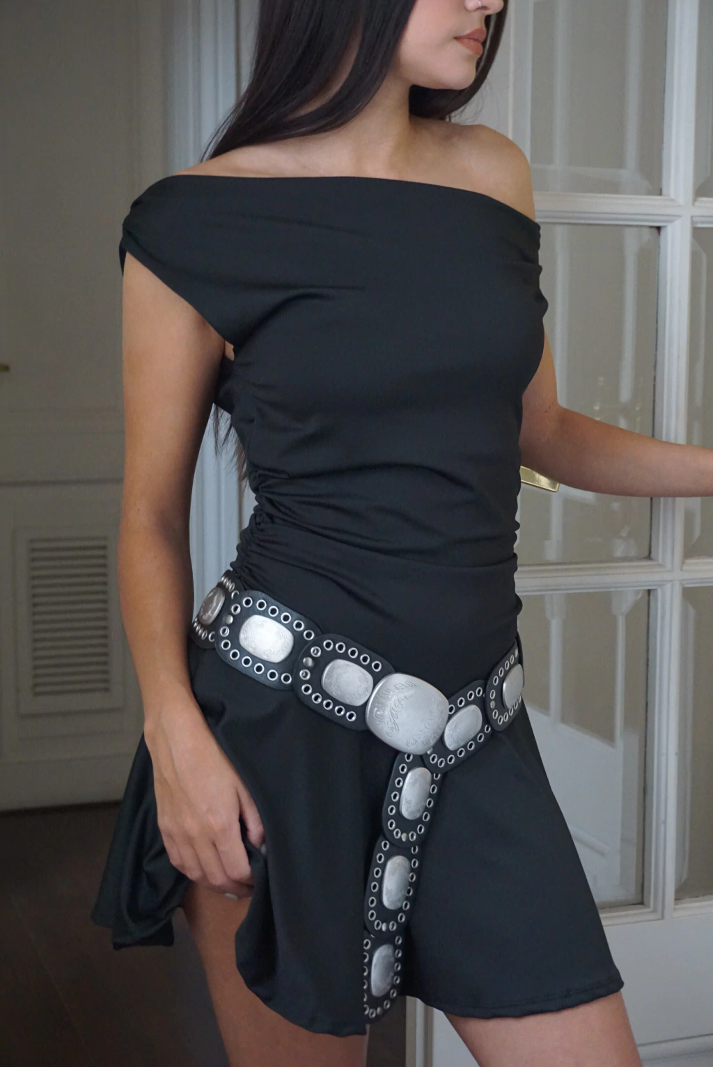 • Vestido corto con un hombro descubierto y frunces laterales♥